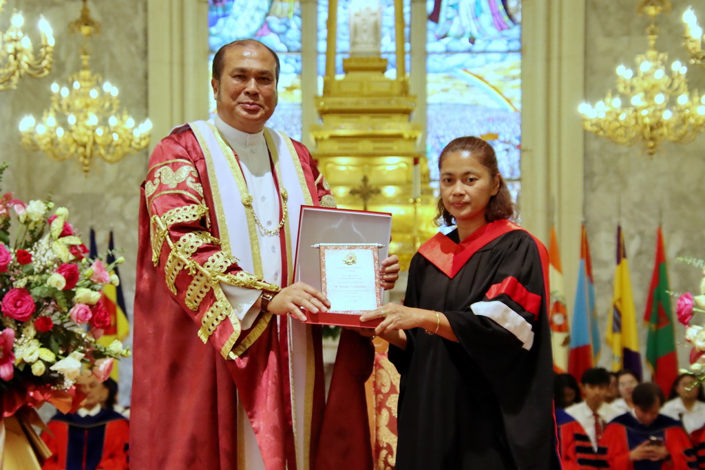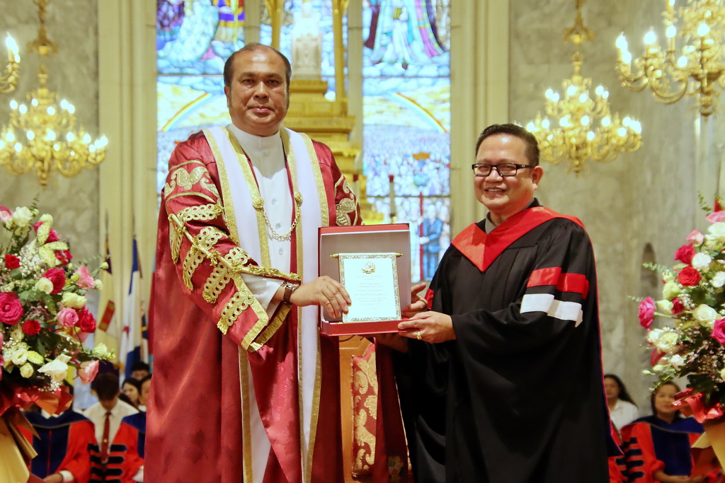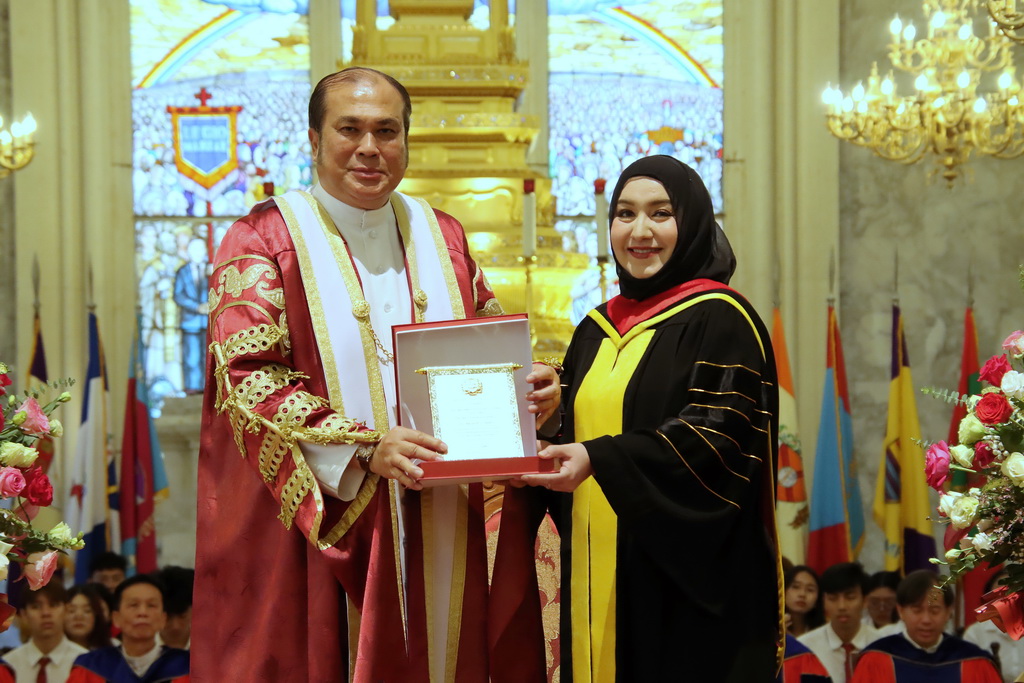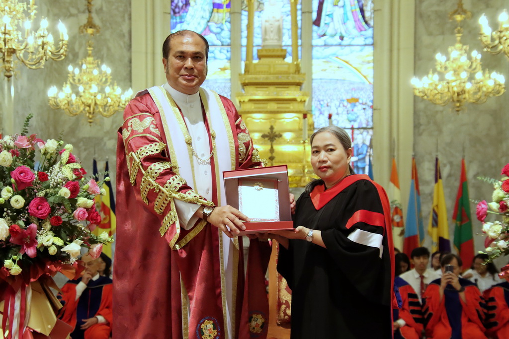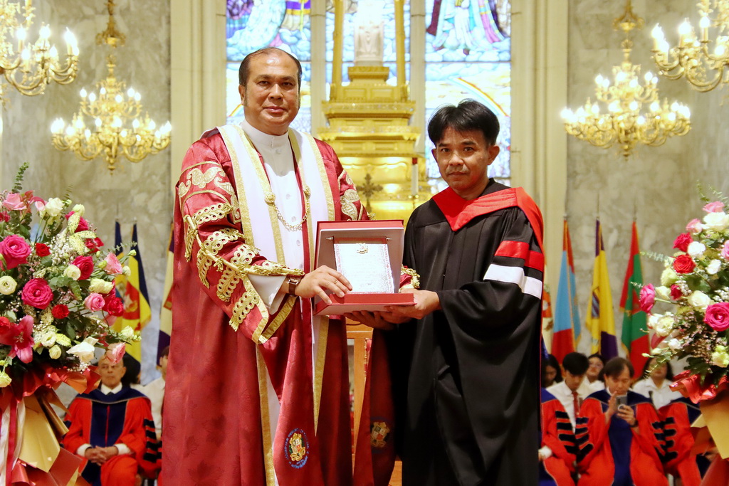 The ceremony followed a traditional and carefully structured program, beginning with an assemblage at the Chapel of St. Louis Marie de Montfort, Suvarnabhumi Campus. The arrival of the President marked the formal opening of the proceedings, followed by a report from the Vice President for Academic Affairs and the conferral of the AU Awards of Excellence, including the reading of citations and the presentation of awards by the President.