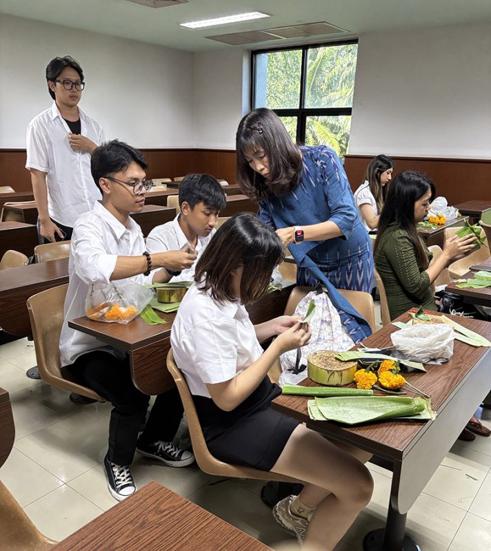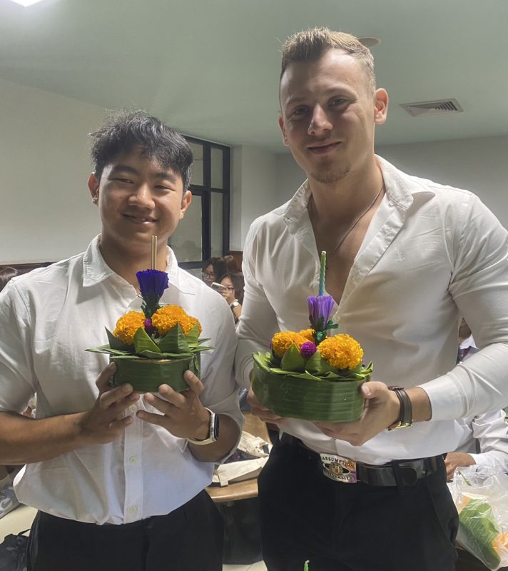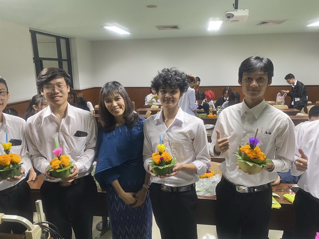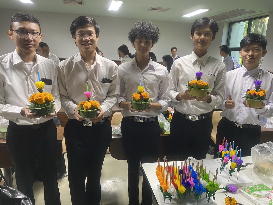 Dr. Jaruwan Paungmalee, a course coordinator of Thai Language and Culture, emphasized that one of the best ways to learn about other foreign languages and cultures is to absorb through the learning activity experiences. This hands-on approach to learning, such as making Krathong, engages students and makes them active participants in their learning process. Their curiosity about the root of culture associated with the nations they came from and how it compares and contrasts with Thai culture made them eager to know more. This type of learning helps them understand more about Thai people and culture and fosters a rich cultural exchange where they can share and learn from each other’s traditions and customs. This exchange enriches their understanding of Thai culture and motivates them to desire to speak Thai.