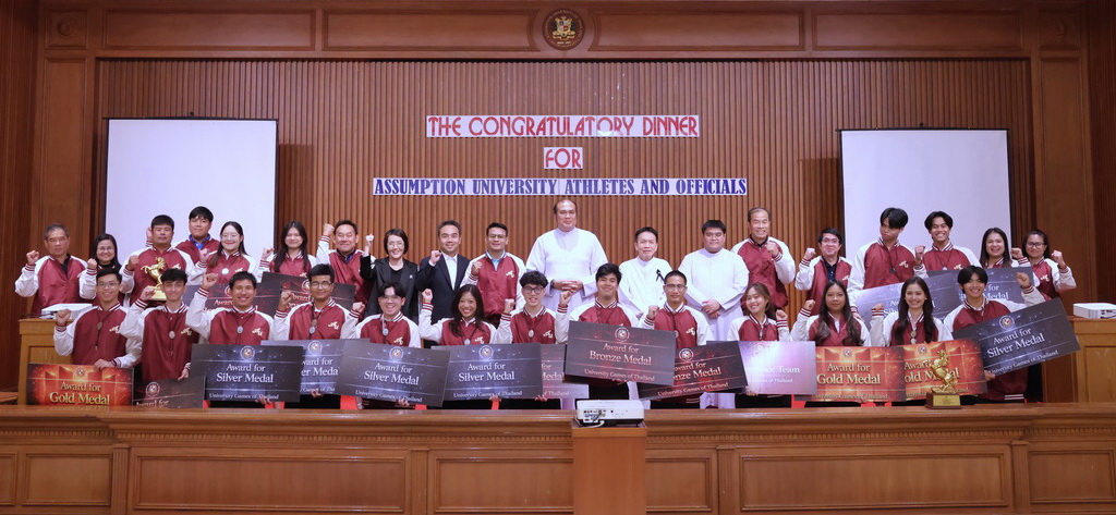 On January 27, 2026, Assumption University of Thailand (AU) organized a warm and celebratory congratulatory dinner to honor its athletes and working team following their successful participation in the 51st Thailand University Games “Inthanin Games,” held at Maejo University in Chiang Mai.
