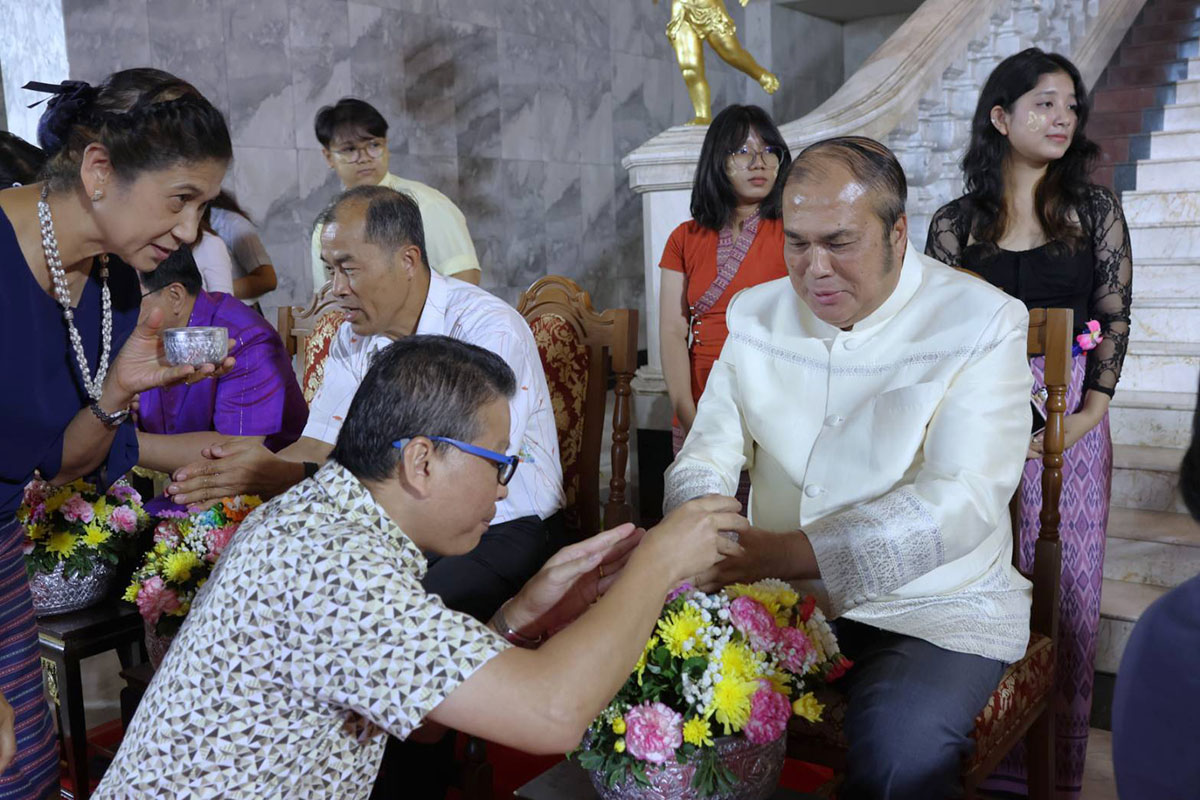 Members of the AU community took part in the sprinkling of scented water onto a Buddha image at Sri Rattanagosin Gate. This quiet and meaningful activity offered a traditional way to pay respect and welcome the New Year with peace and reflection.