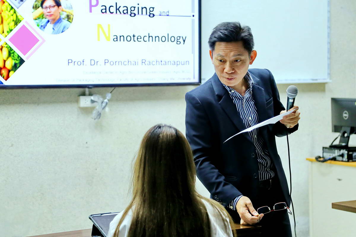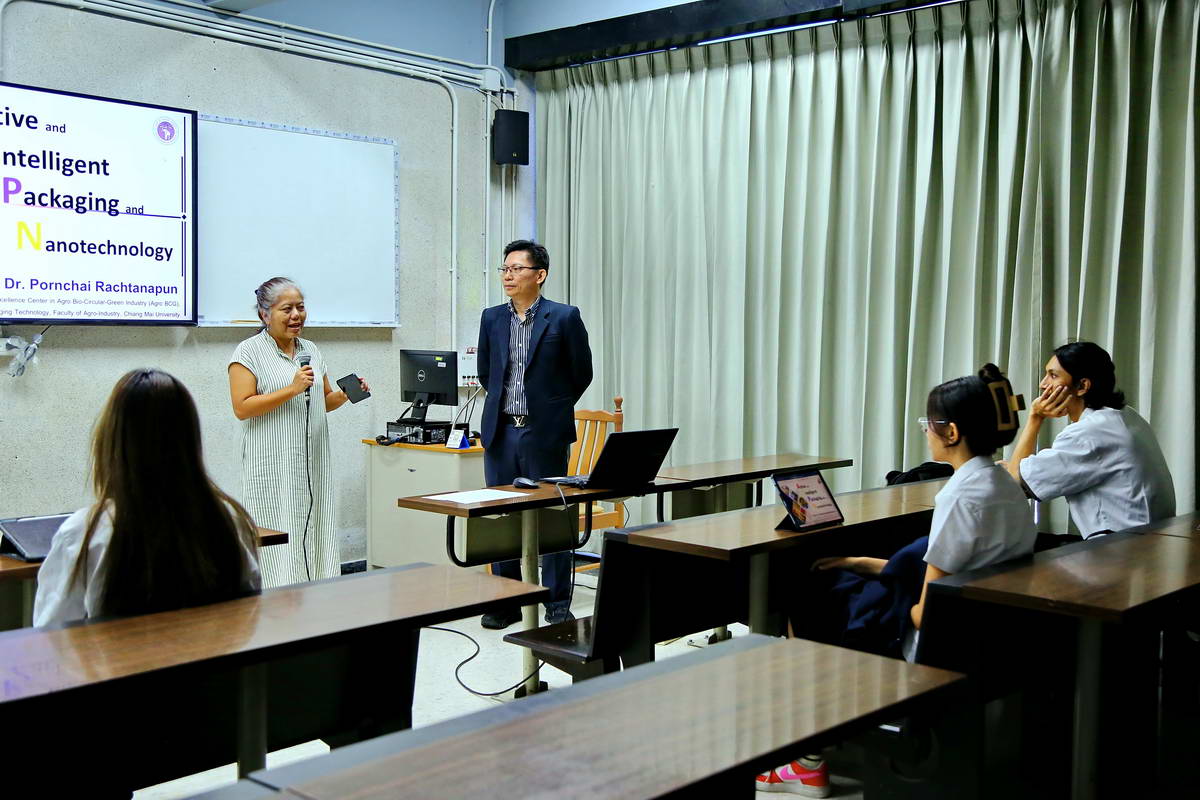 Prof. Dr. Pornchai Rachtanapun, a distinguished academic and senior researcher in the field of active and intelligent packaging technology, captivated students and faculty with his in-depth exploration of packaging innovations that extend shelf life, enhance food safety, and deliver real-time information to consumers. His presentation bridged theoretical knowledge with practical applications, illustrating how active and intelligent packaging is transforming the global food industry.