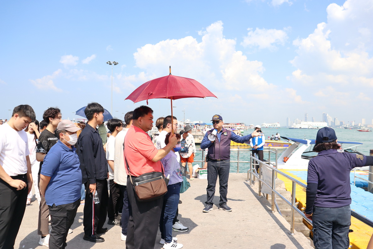 Culminating the enriching journey at Bali Hai Pier in Pattaya, Chonburi Province, participants grasped the nuances of port operations and kinds of vessels, elucidating the critical role of legal compliance in maritime logistics, laws regarding navigation in Thai waters, Thai ship law, laws on ship collision prevention, laws on the strengthening of maritime commerce, laws on multimodal transport, and other related laws, etc. The special lecture and practice demonstration was illustrated by Mr. Ekkarat Kantharo, Director of the Pattaya Marine Department Region 6 and his professional officials’ team.