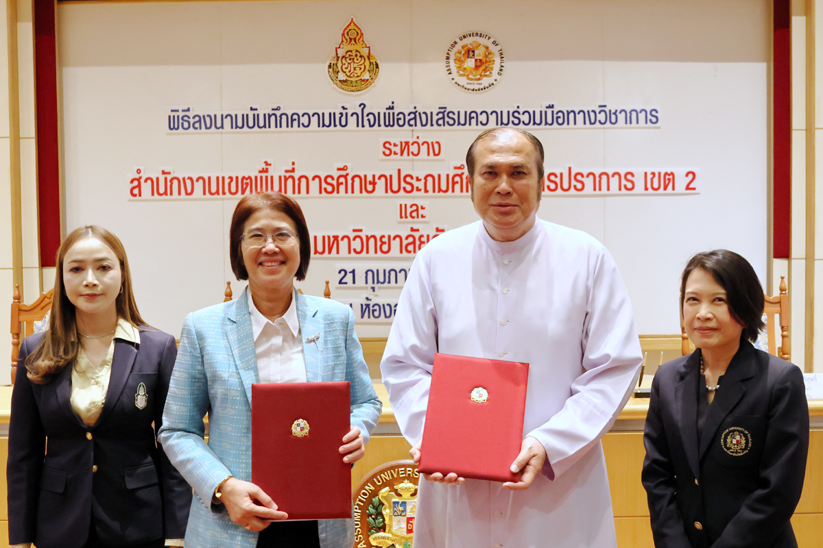 - มหาวิทยาลัยอัสสัมชัญ วิทยาเขตสุวรรณภูมิ จัดพิธีลงนามบันทึกความเข้าใจเพื่อส่งเสริมความร่วมมือทางวิชาการ MOU ระหว่าง สำนักงานเขตพื้นที่การศึกษาประถมศึกษาสมุทรปราการเขต 2 และ มหาวิทยาลัยอัสสัมชัญ