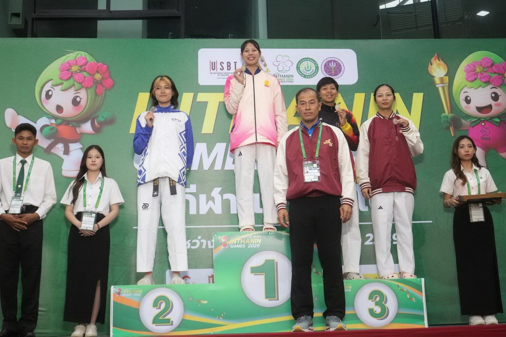 The Games have already delivered a moment of celebration for the AU community with the University’s first medal of the tournament. Ms. Pacharaporn “Tanyong” Sukhamon, a third-year student from the Theodore Maria School of Arts, earned a bronze medal in the women’s taekwondo sparring event (under 62 kg). Her semifinal match was closely fought, underscoring the high level of competition at this year’s Games.