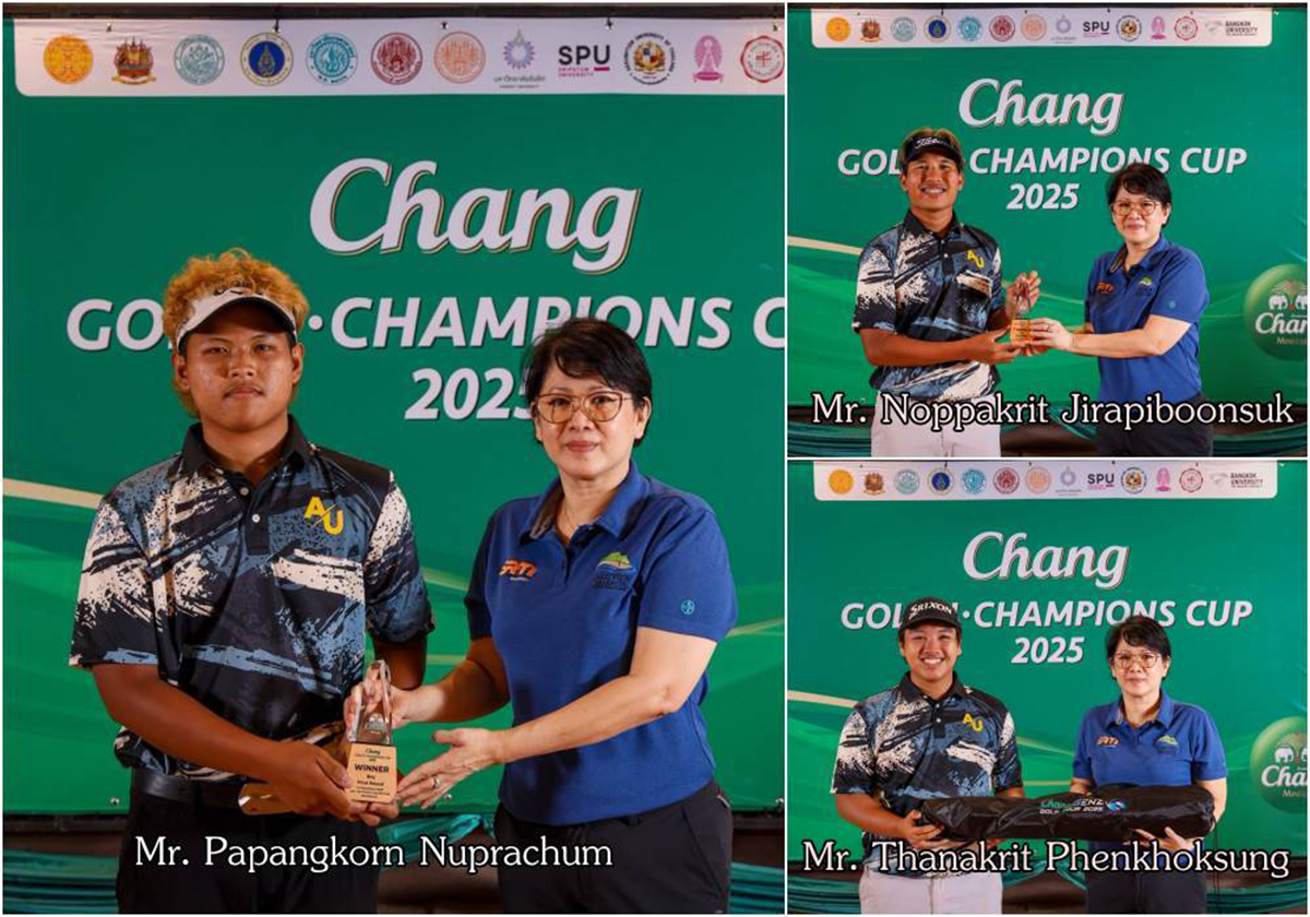 Assumption University of Thailand (AU)’s golf team proudly delivered an outstanding performance at the Chang Golf U-Champions Cup 2025 Grand Final, held from September 5–7, 2025 at Lake View Resort & Golf Club, Phetchaburi.