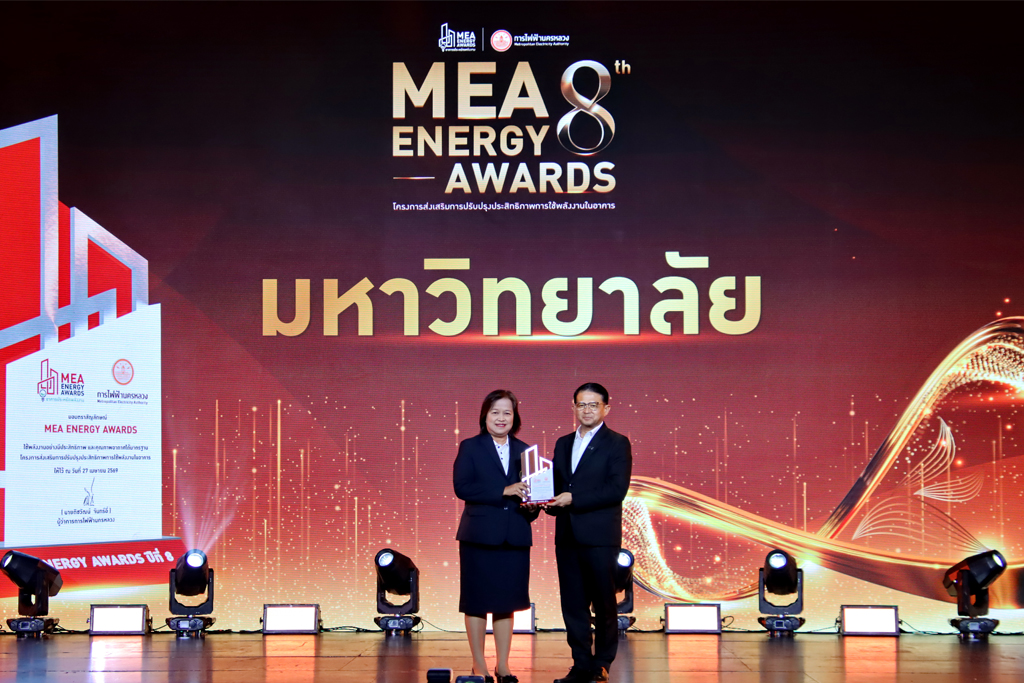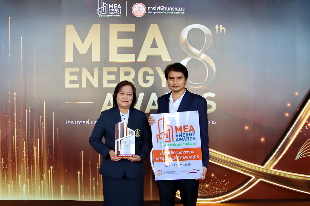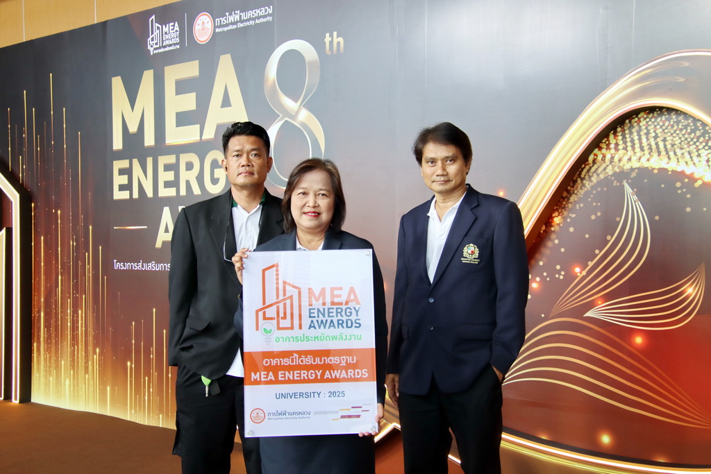 Presented through the Metropolitan Electricity Authority’s MEA Energy Awards 2025 program, the recognition honored buildings that demonstrated strong performance in energy management and indoor environmental quality. According to the official notification, AU’s participating building achieved a MEA Index score of 0.981 (MEA Index must not exceed 1.00), meeting the criteria for recognition in the university building category.