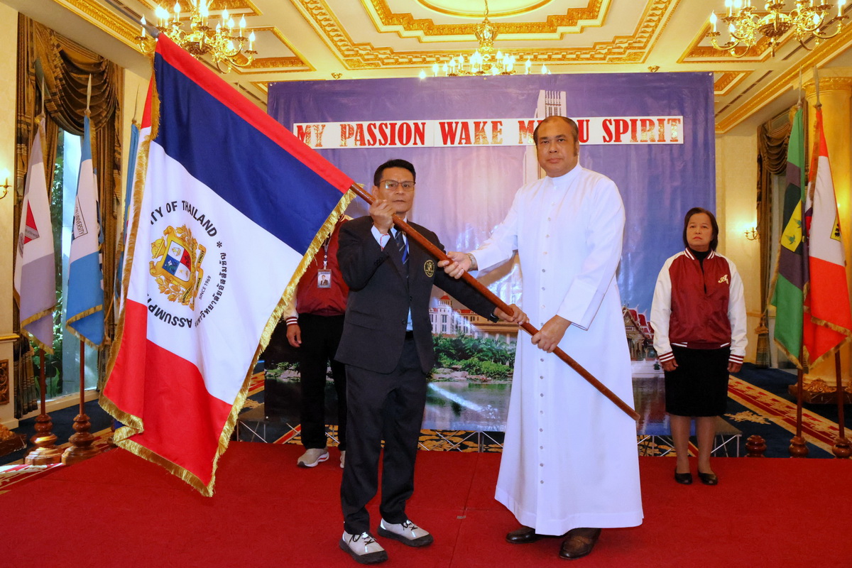 A highlight of the ceremony was the symbolic handover of the AU flag by Rev. Bro. Sirichai Fonseka, f.s.g., Ph.D., President of AU, to the Head of the Athlete Delegation Mr. Nukul Chaisuriya. The gesture marked the University’s trust and encouragement as its athletes prepared to compete on the national stage.