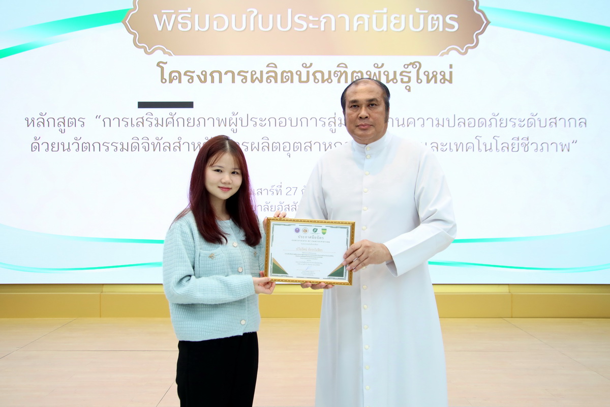 Assumption University of Thailand (AU), in collaboration with the Ministry of Higher Education, Science, Research and Innovation, and the Thai Future Food Trade Association, held a certificate awarding ceremony on Saturday, September 27, 2025, at the Hua Mak Campus.