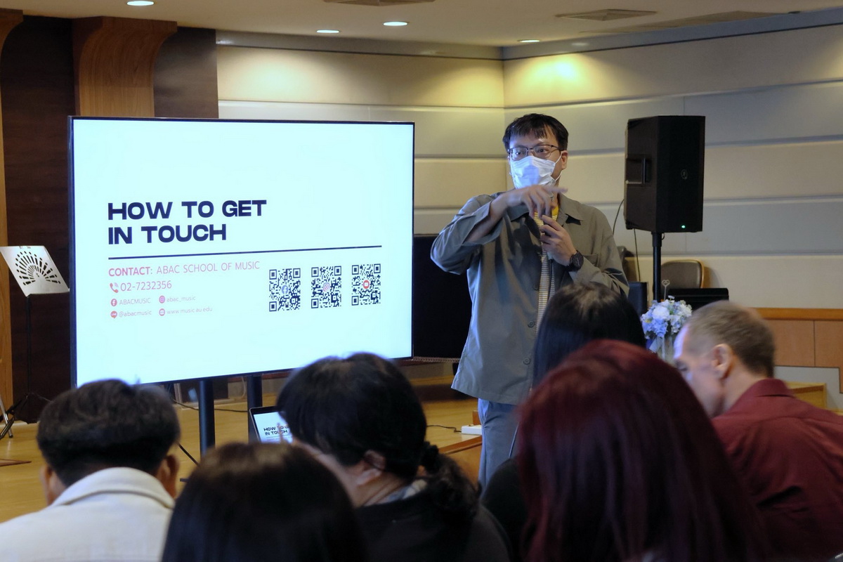 The orientation also spotlighted the University’s signature Music Entrepreneurship program—the only one of its kind in Thailand. Here, students don’t just learn performance and theory—they explore music as a driver of innovation, business, and social impact. From composing to producing, data analytics to artist management, the program blends creativity with real-world skills to prepare students for success in today’s digital music landscape.