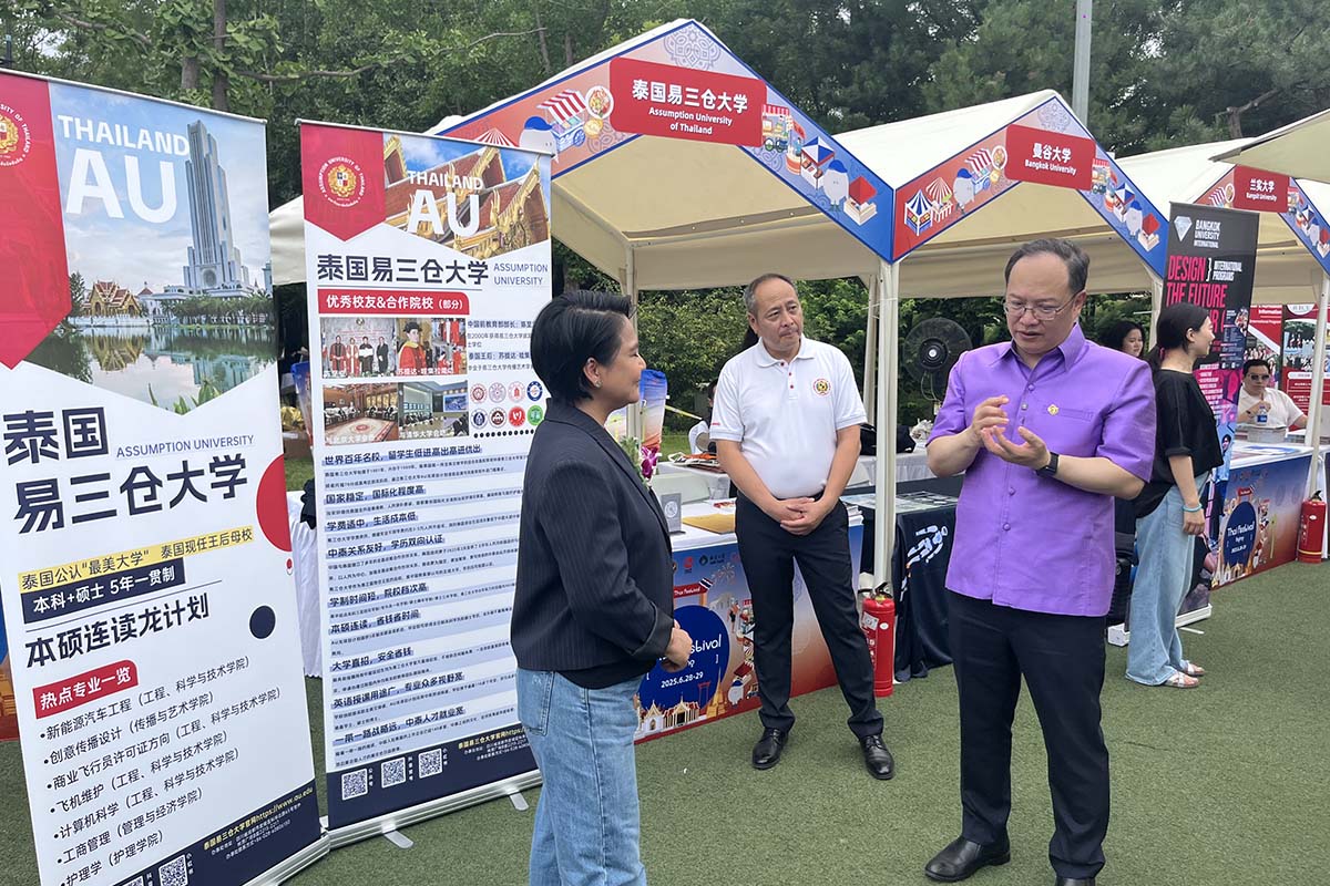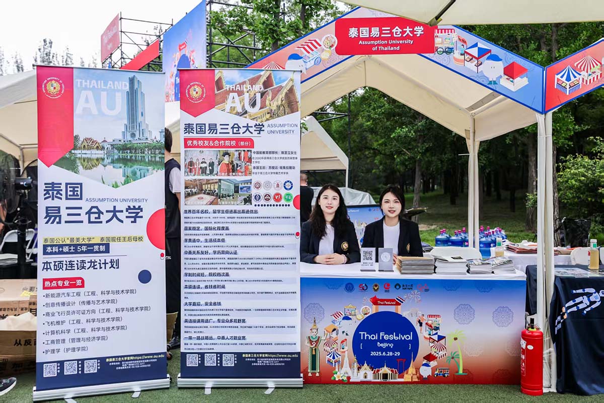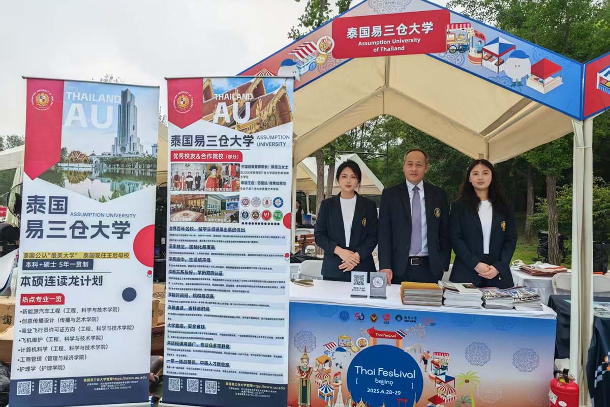 From June 28–29, 2025, Assumption University of Thailand(AU), proudly participated in the “Thai Festival” in Beijing, a special celebration marking the 50th anniversary of diplomatic relations between China and Thailand. The event was organized by the Royal Thai Embassy in China in collaboration with Thailand’s Ministry of Higher Education, Science, Research and Innovation (MHESI).