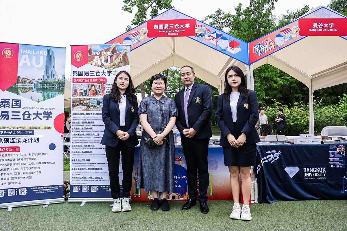 During the event, H.E. Arthayudh Srisamoot, Ambassador of the Royal Thai Embassy in China, and Mr. Chen Shanyi, Minister Counsellor for Science and Technology, visited AU’s exhibition booth. Both officials expressed their appreciation for AU’s ongoing efforts in promoting cultural exchange and academic collaboration with China. They commended the university’s vision for expanding its role in building stronger educational bridges between the two nations.