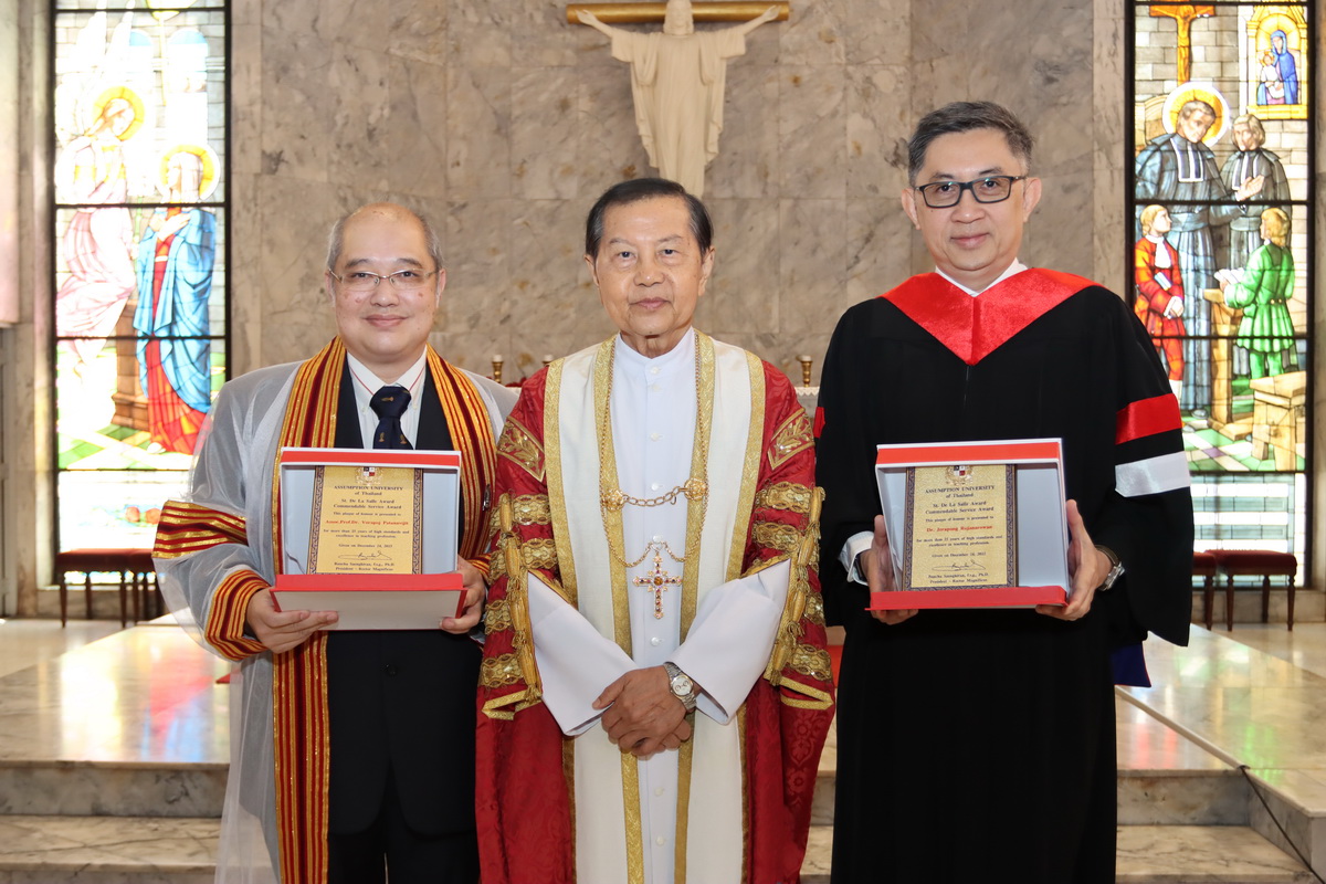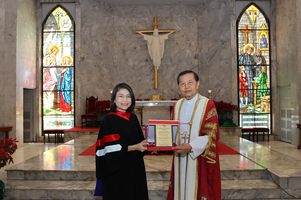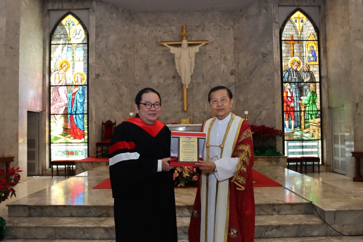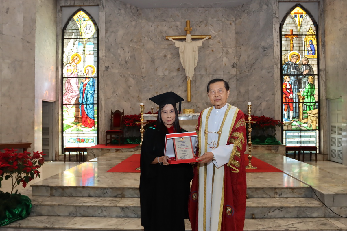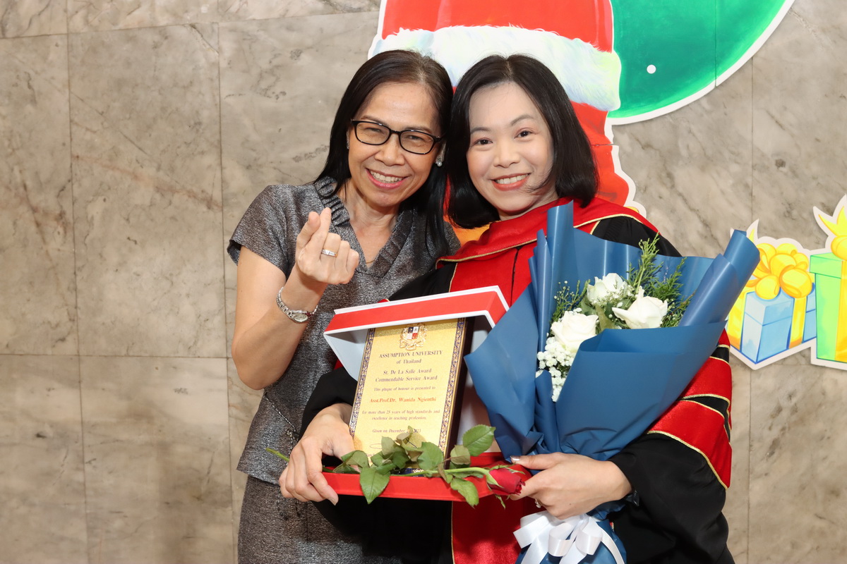 The prestigious St. Montfort Award for Illustrious Service was conferred upon Dr. Chayada Thanavisuth, Dean of the Graduate School of Human Sciences, and Assoc. Prof. Dr. Sureepong Phothongsunan, Dean of the Theodore Maria School of Arts. This award, named after St. Louis Marie Grignion de Montfort, recognizes senior administrators for over twenty-five years of dedicated service.