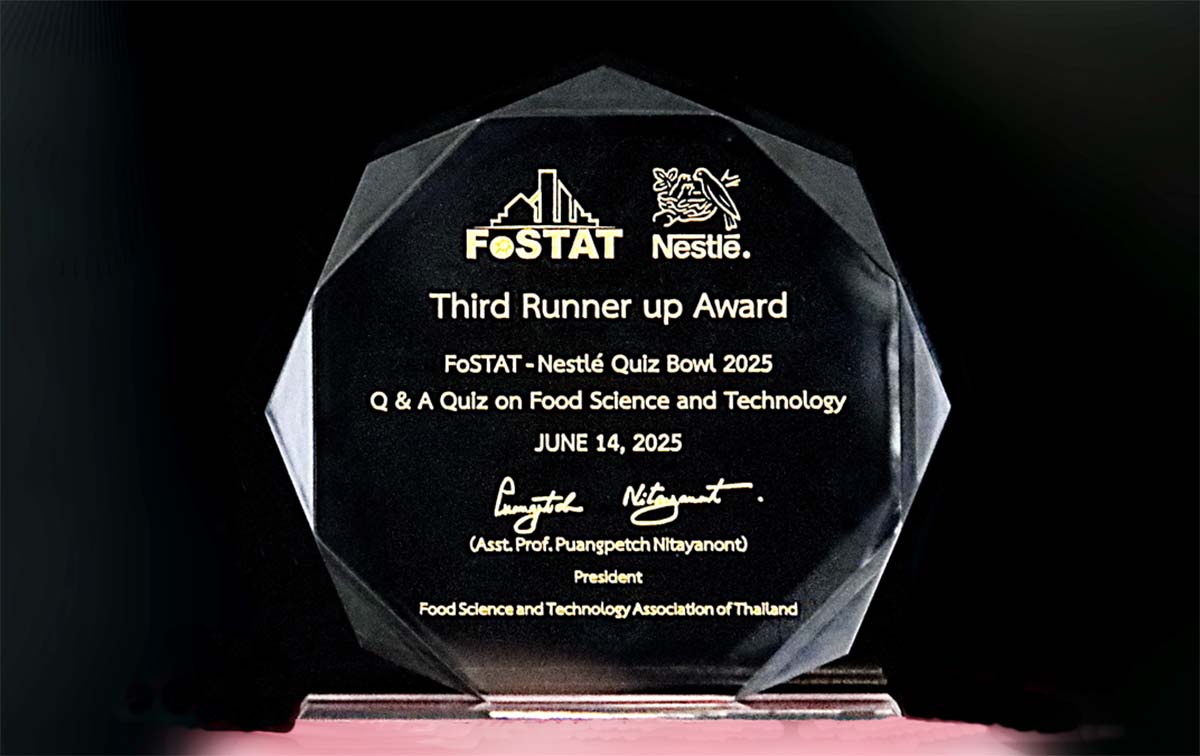 With exceptional knowledge, teamwork, and quick thinking, the AU team impressed judges and peers alike. The competition was hosted by the Food Science and Technology Association of Thailand (FoSTAT) in collaboration with Nestlé (Thai) Ltd., marking another successful year of promoting academic excellence and innovation in the field.