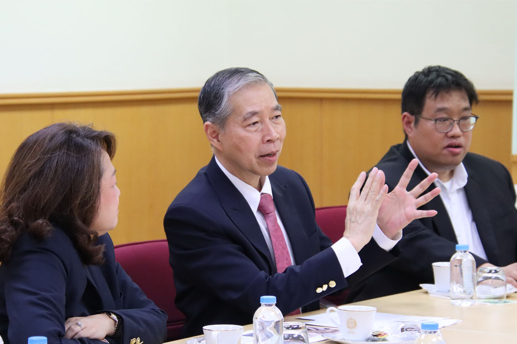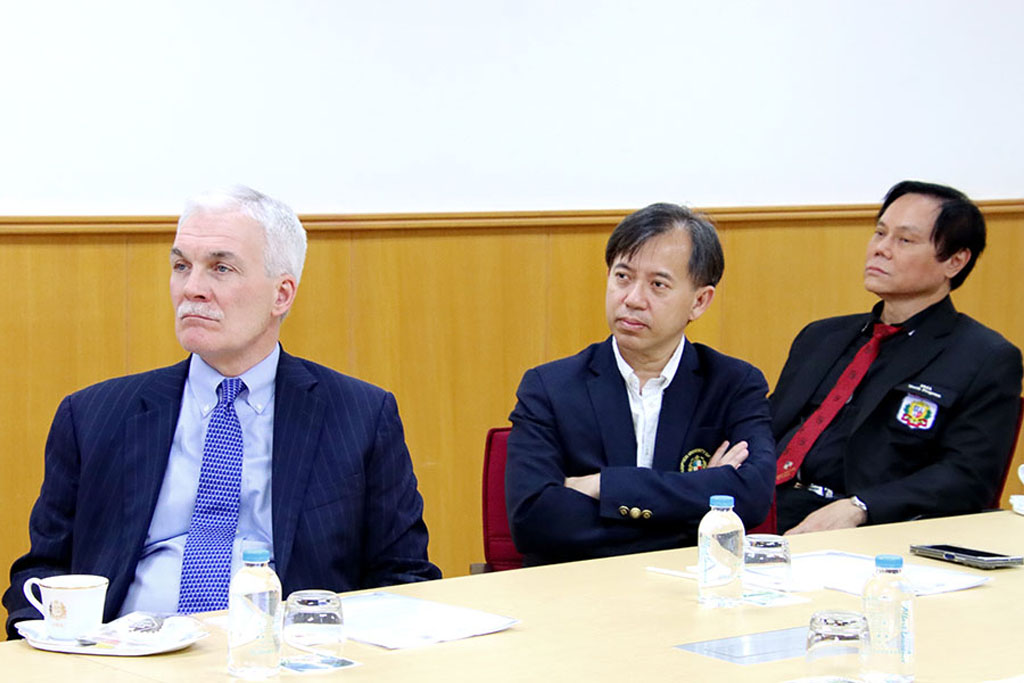 On this occasion, the delegation was warmly received by Asst. Prof. Dr. Uree Cheasakul, Vice President for Academic Affairs, Dr. Soonthorn Pibulncharoensit, University Registrar; Clinical Prof. Suwat Benjaponpitak, M.D., Dean of the St. Luke School of Medicine, Mr. Niti Mukayavongsa, Executive of the Pongsak Viddayakorn Foundation, along with executives from the Office of the Vice President for Academic Affairs, and faculty administrators and members of the St. Luke School of Medicine.