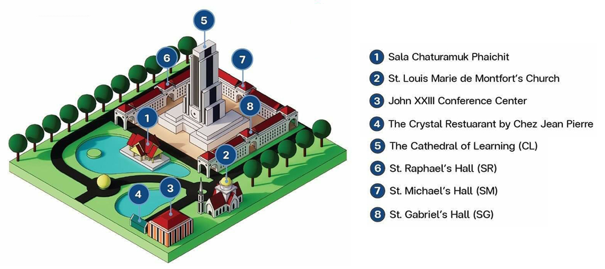 Crystal Restaurant “Chez Jean Pierre” – a two storeys glass building (located near The John XXIII Conference Center) is a place for practical learning of AU students who take Kitchen Operations, offer a real cooking experience with operating crystal restaurant (HTM 4112/BHT 3405) and Food & Beverage Service, offer a real teaching to be bartender or barista (HTM 4111/ BHT 3404).