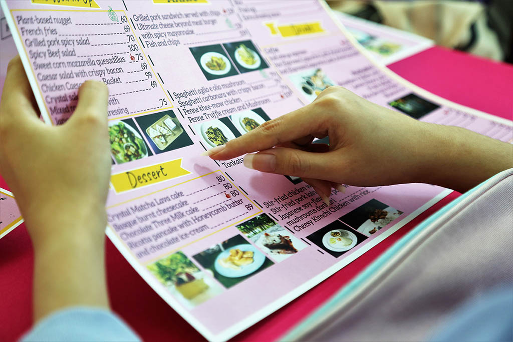 We serve variety of food, burger, spaghetti, Korean, plant-based food and Thai food with signature desserts and smoothies. Prices are affordable because they are sponsored by the university. Come to have lunch at Crystal Restaurant with good services by AU students and enjoy the beautiful view of our campus through the glass wall.