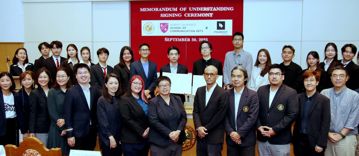 The Albert Laurence School of Communication Arts, Assumption University of Thailand (AU), formally signed a Memorandum of Understanding (MoU) with Fourdigit (Thailand) Co., Ltd. on September 30, 2025, at the Wiset Srisamut Room, The Cathedral of Learning Building, Suvarnabhumi Campus.
