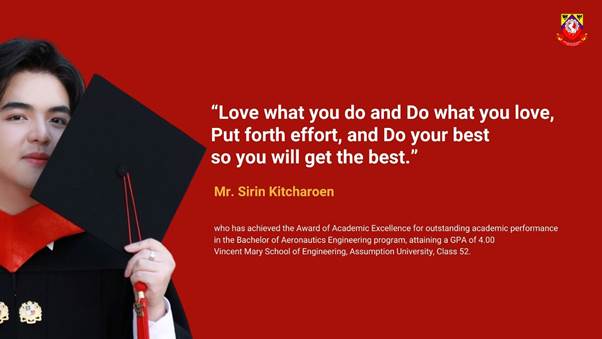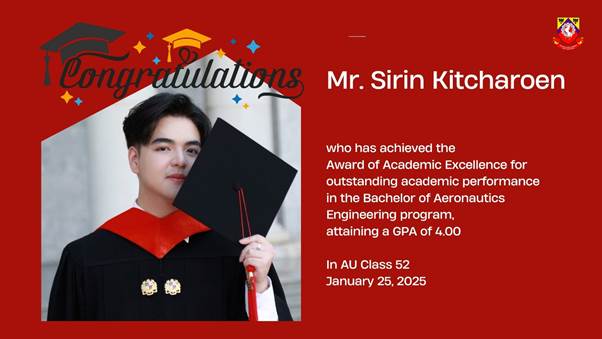“Mr. Sirin Kitcharoen embodies the very spirit of excellence, resilience, and ambition that we cultivate at our school. His success is not just personal—it is a beacon for the next generation of engineers and pilots. We have no doubt that he will soar to even greater heights in his future endeavors.”