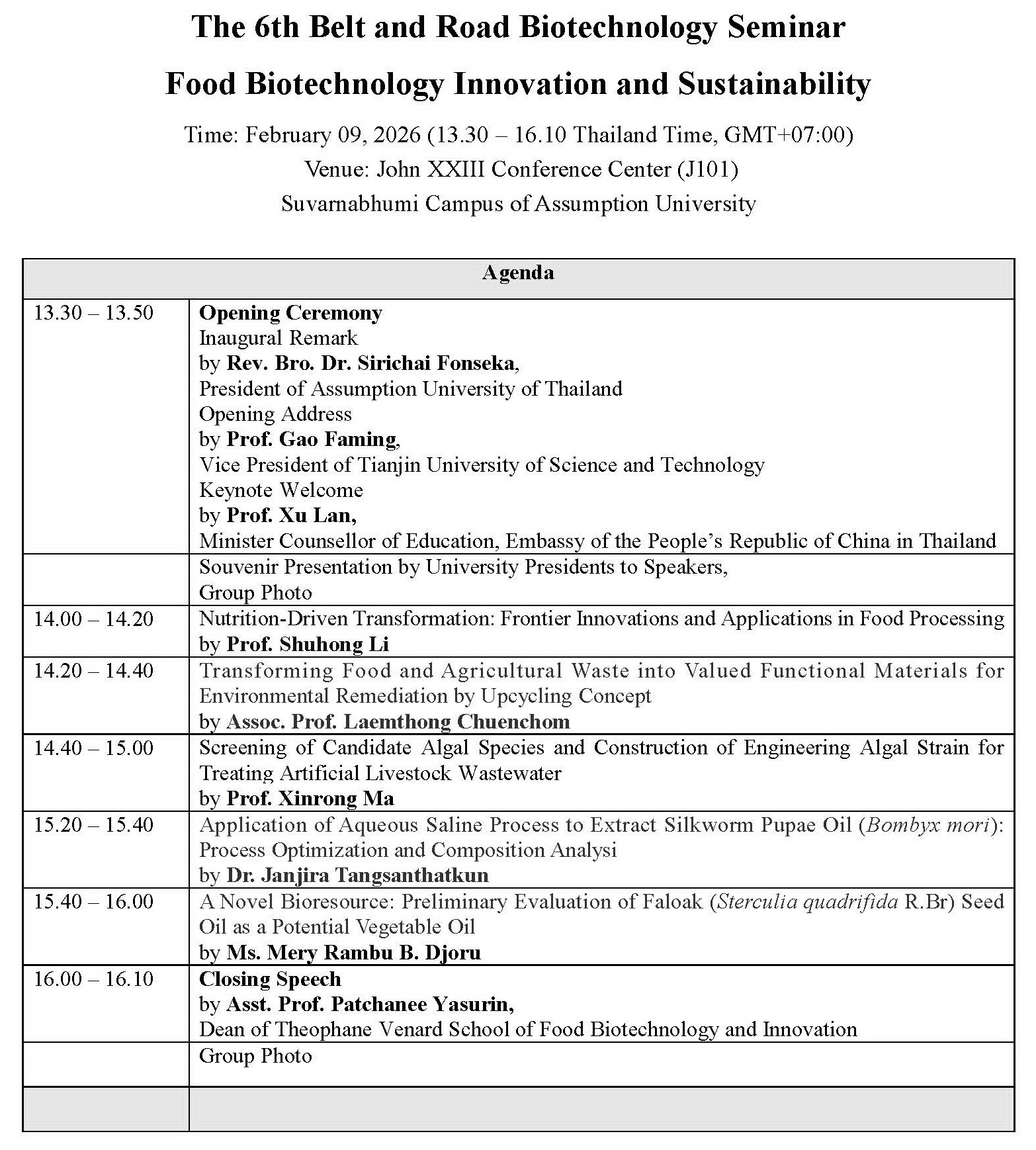 The 6th Belt and Road Biotechnology Seminar 2026, Food Biotechnology Innovation and Sustainability