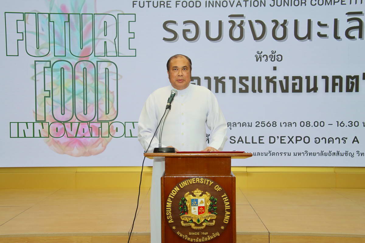 The energy was electric at the Future Food Innovation Junior Competition 2025, on October 17, 2025, hosted by Assumption University of Thailand (AU) at the Salle d’Expo, Hua Mak Campus. Organized by the Theophane Venard School of Food Biotechnology and Innovation, the event brought together the top 43 finalist teams from across Thailand to pitch their groundbreaking “Future Food” products to a panel of judges from academia and industry.