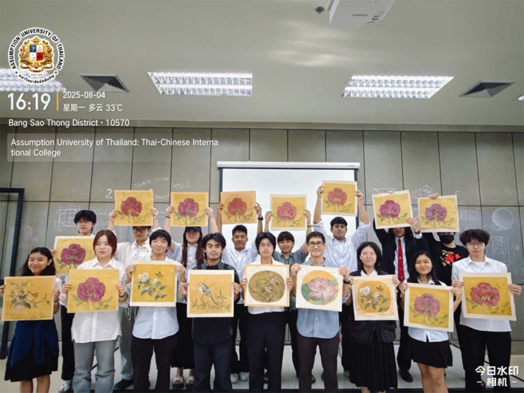 A beautiful expression of Eastern aesthetics came to life as Assumption University of Thailand (AU) recently hosted a three-day workshop on Gongbi bird-and-flower painting, led by Professor Zhang Li of Nanjing University of Industry Technology. The workshop took place at the Suvarnabhumi Campus and welcomed faculty and students from the Albert Laurence School of Communication Arts, offering them a hands-on journey into one of China’s most refined artistic traditions.