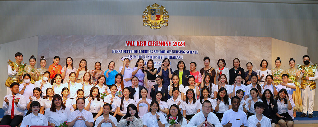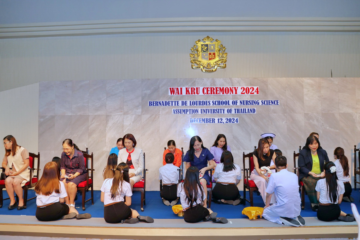 On December 12, 2024, the Bernadette de Lourdes School of Nursing Science (BLNS) at Assumption University of Thailand (AU) hosted its Wai Kru ceremony at De Montfort Hall, Hua Mak Campus. The event, held from 4:00 PM to 7:00 PM, brought together students, faculty, and guests to celebrate a cherished Thai tradition.