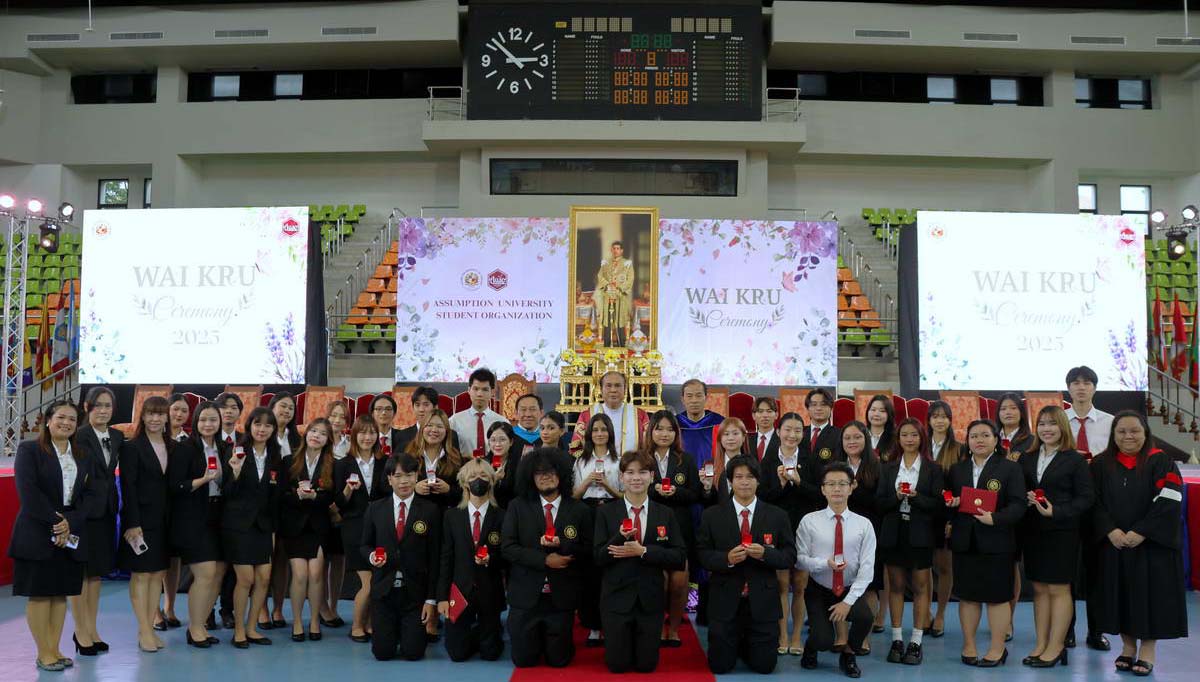 On July 17, 2025, the Assumption University of Thailand (AU)’ s community came together in the spirit of gratitude and tradition to celebrate the annual Wai Kru Ceremony, held at the John Paul II Sports Center, Suvarnabhumi Campus. With doors opening at 12:00 noon and the ceremony running from 13:00 to 16:00 hrs, the event welcomed students in full uniform for a heartfelt tribute to the educators who guide and shape their academic journey.