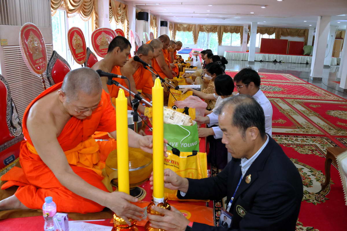 The Office of Thai Art and Culture, Student Affairs, Assumption University of Thailand (AU) led a meaningful cultural and spiritual outing for members of the AU community on Tuesday, 8 July 2025, to mark the beginning of Buddhist Lent (Khao Phansa) with a Candle Offerings Ceremony and Alms Giving at Wat Sukhunthawas, located in Bang Bo District, Samut Prakan Province.