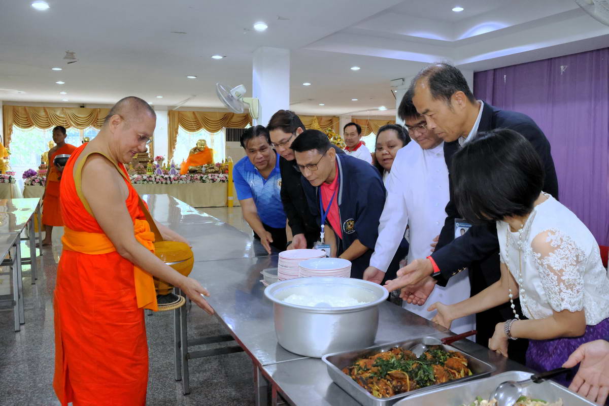 Following the ceremony, participants engaged in an alms-giving ritual, offering food and daily necessities—many bringing personal items as part of the merit-making tradition. The formal activities concluded with a blessing, and all were invited to enjoy a shared lunch prepared by Office of Thai Arts & Culture, Student Affairs.