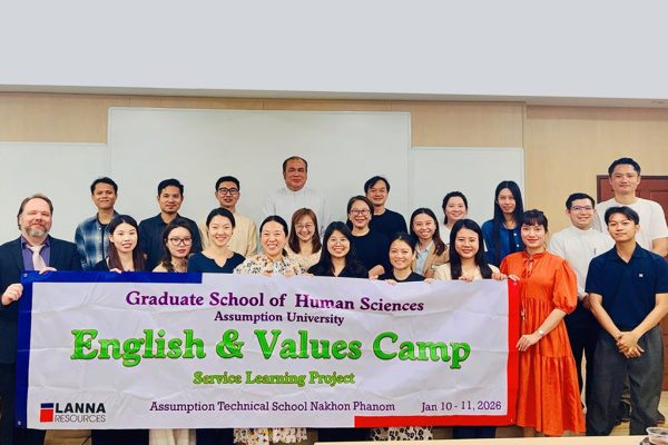 As part of the courses Seminar in Teacher Educational Ethics and Seminar in Educational Administration and Leadership, 19 graduate students from the Graduate School of Human Sciences at Assumption University of Thailand (AU) participated in a service-learning project at Assumption Technical School Nakhon Phanom on January 10–11, 2026. The project was led by Asst. Prof. Dr. Poonpilas Asavisanu and Dr. Timothy Scott.