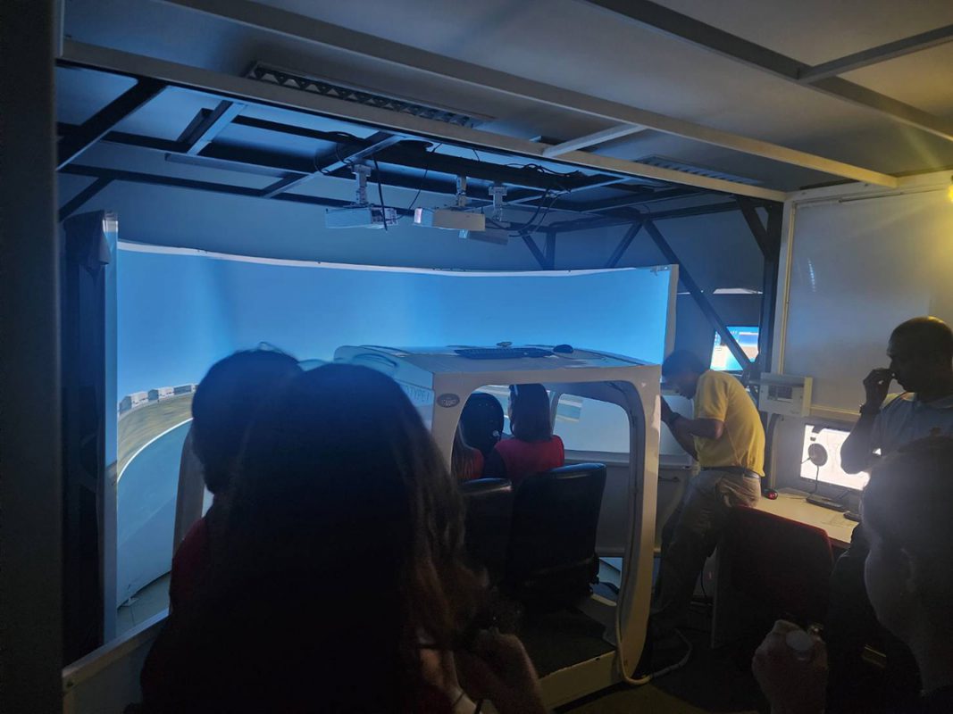 After lunch, we explored the Chapel of St. Louis Marie de Montfort, a place of peace and inspiration. A tram tour gave students a closer look at the campus before heading to Vincent Mary School of Engineering, Science and Technology (VMES). Here, they had the chance to experience a flight simulator and see an aircraft maintenance room, a truly unique hands-on experience.