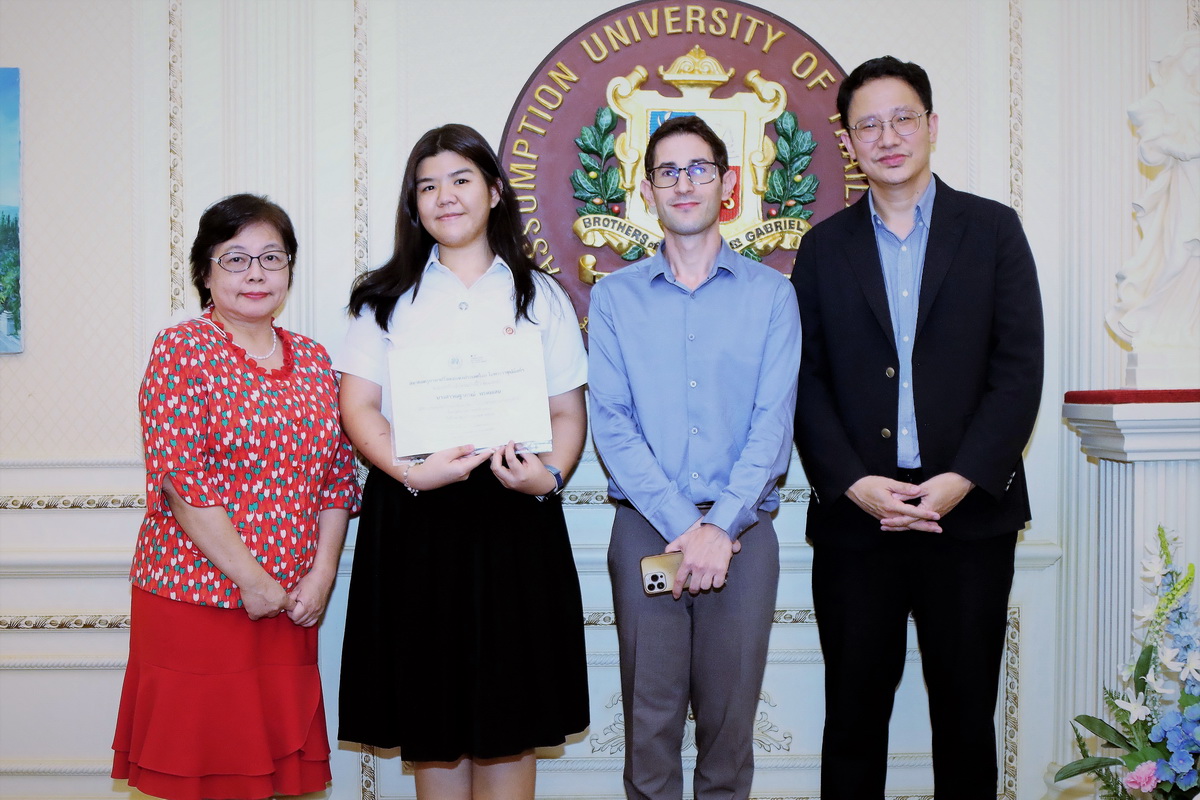 In a remarkable display of linguistic prowess and creativity, four Business French students from Assumption University clinched top honors in the fiercely contested French Writing and Story telling Contest. Ms. Jarukan Ruangsri, Ms. Jinda Kosa, and Mr. Valentin Delporte each secured the prestigious Third Prize, showcasing their exceptional skills in French writing and storytelling. Additionally, Ms. Nathapon Promsen received a Consolation Prize in the French Storytelling Contest, further underscoring the university’s strength in foreign language education..