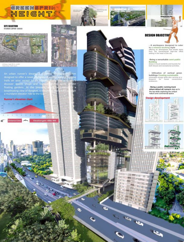 The award forms a part of a larger project undertaken in the fifth year of the architecture program (B.Arch.), titled “Green Sprint Heights.” This ambitious project aims to reimagine urban spaces with a palette dominated by various shades of green, symbolizing growth and renewal. Each level of the proposed structure is envisioned as a unique brushstroke, rising toward the sky, while commercial spaces interspersed throughout the design offer respite and