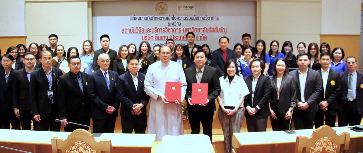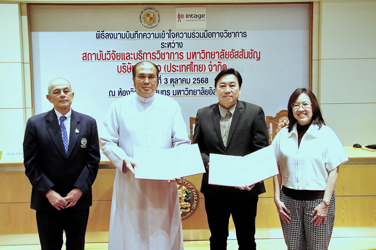 Assumption University of Thailand (AU), through its Institute for Research and Academic Services (IRAS), officially signed a Memorandum of Understanding (MoU) with Intage (Thailand) Co., Ltd. on October 3, 2025, at The Cathedral of Learning Building, Suvarnabhumi Campus.