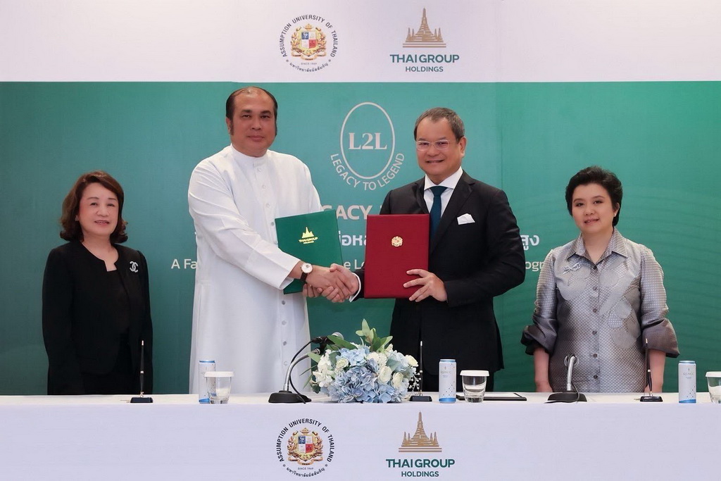 Thai Group Holdings PCL, a leading insurance and financial services group under TCC, led by Mr. Chotipat and Mrs. Athinan Pichanon, Chairman and Vice Chairman of the Executive Committee, signed a Memorandum of Understanding (MoU) for academic collaboration with Assumption University of Thailand (AU). The agreement was co-signed by Rev. Bro. Sirichai Fonseka, f.s.g., Ph.D., President of AU, and Asst. Prof. Dr. Uree Cheasakul, Vice President for Academic Affairs.