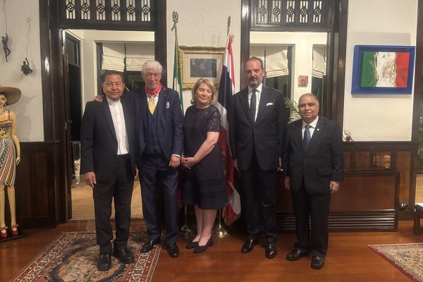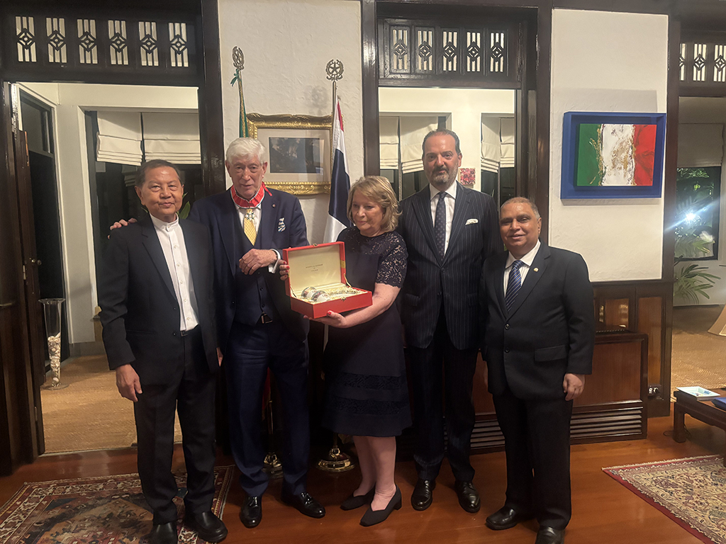Rev. Bro. Bancha Saenghiran and Mr.Glen Chatelier congratulated Commander of the Star of Italy, Gaudenzio Enzo Peroni and Mrs. Peroni