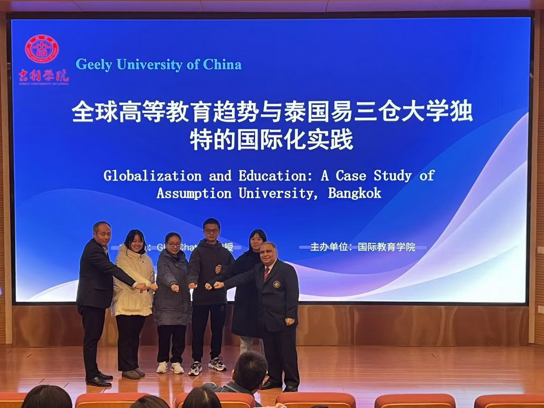 On November 19, 2024, Assumption University of Thailand (AU)’s Mr. Glen Chatelier, Senior Lecturer from Graduate School of Business and Advanced Technology Management, delivered a thought-provoking lecture to over 100 undergraduate students at Geely University in China.