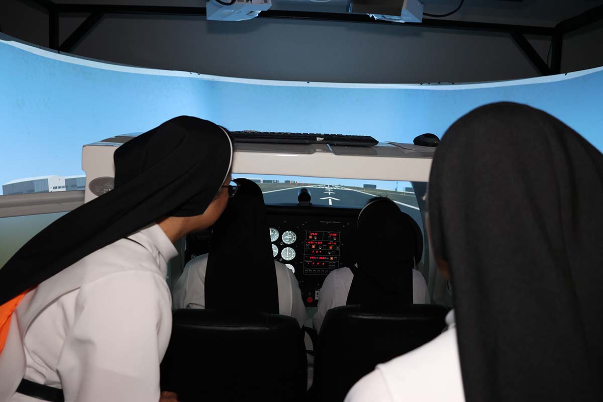 The sisters were immersed in AU’s cutting-edge Flight Simulator, where students train to navigate the skies. From there, they toured the Aircraft Maintenance Lab and Engineering Workshop, witnessing firsthand how AU blends rigorous technical training with ethical, values-based education. “It was like watching science fiction rooted in faith,” one sister remarked in awe.