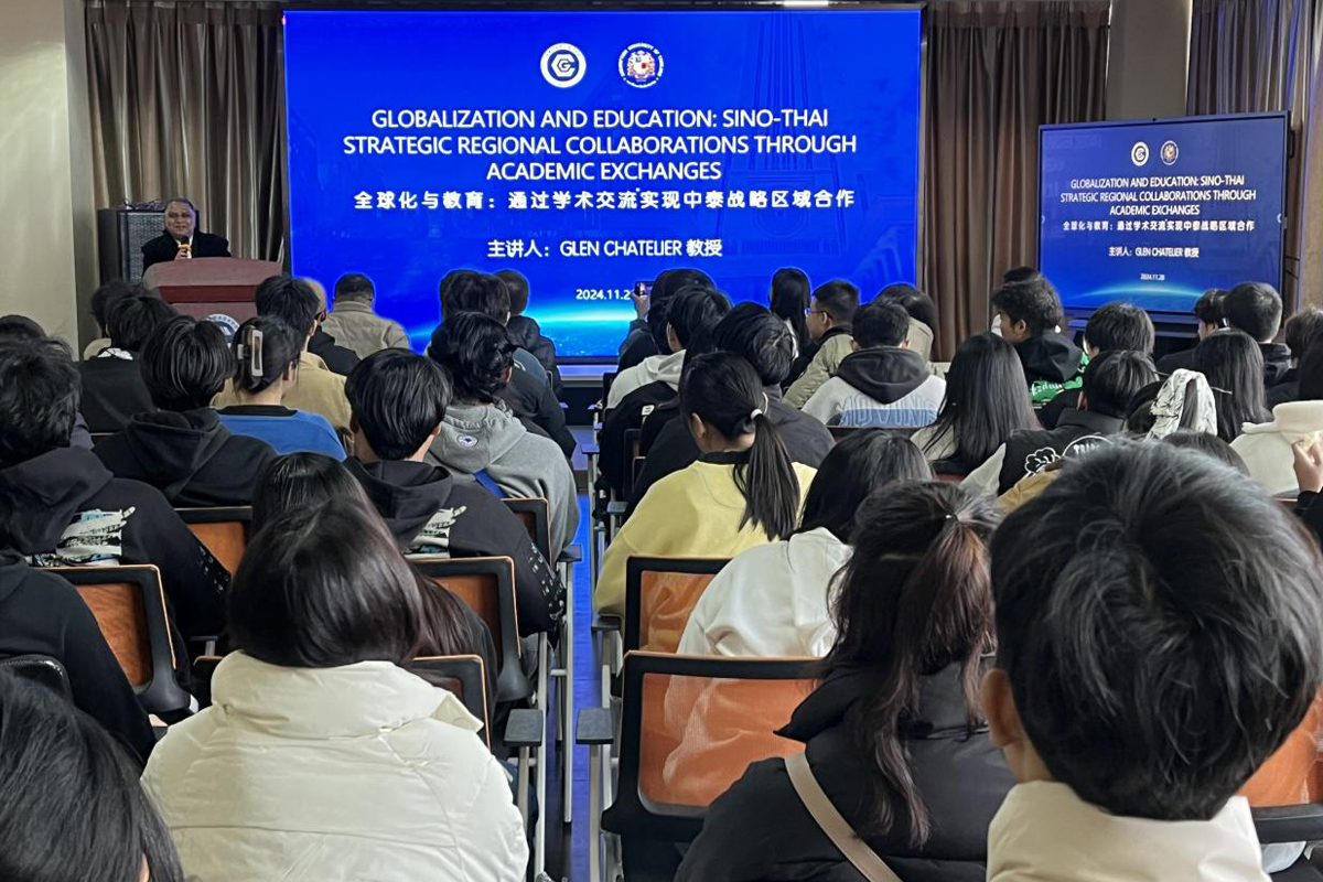 On November 28, during the 2024 Panda Workshop: Thai Meets Chengdu Sino-Thai Cultural Exchange Week held at Chengdu Polytechnic, Mr. Glen Chatelier delivered a lecture to over 70 Chinese and Thai students. The lecture, titled “Globalization and Education: Advancing Sino-Thai Strategic Regional Cooperation through Academic Exchange,” provided an in-depth analysis of educational exchange models in the context of regional internationalization. He also highlighted the critical role of academic collaboration in fostering the development of Sino-Thai relations.