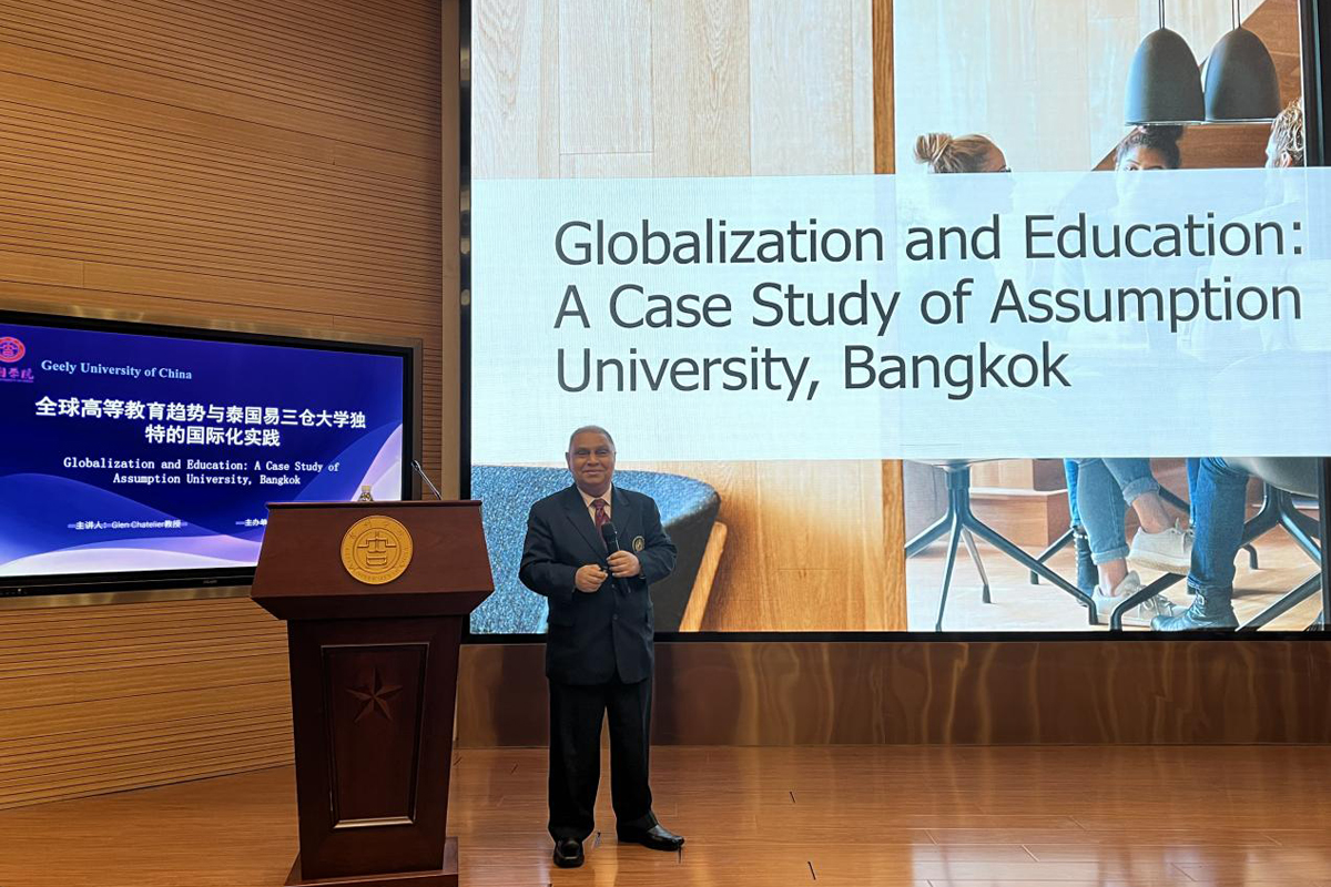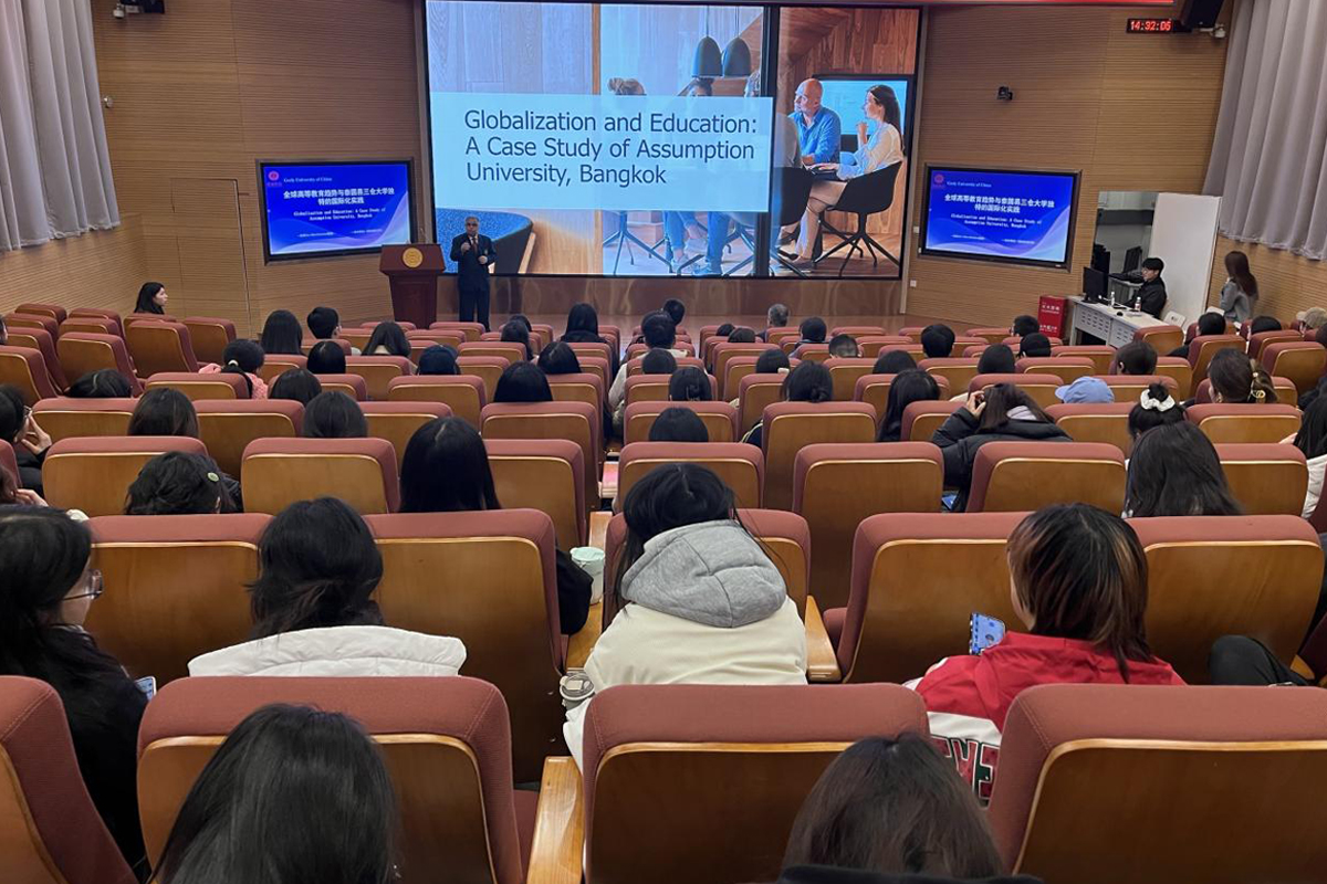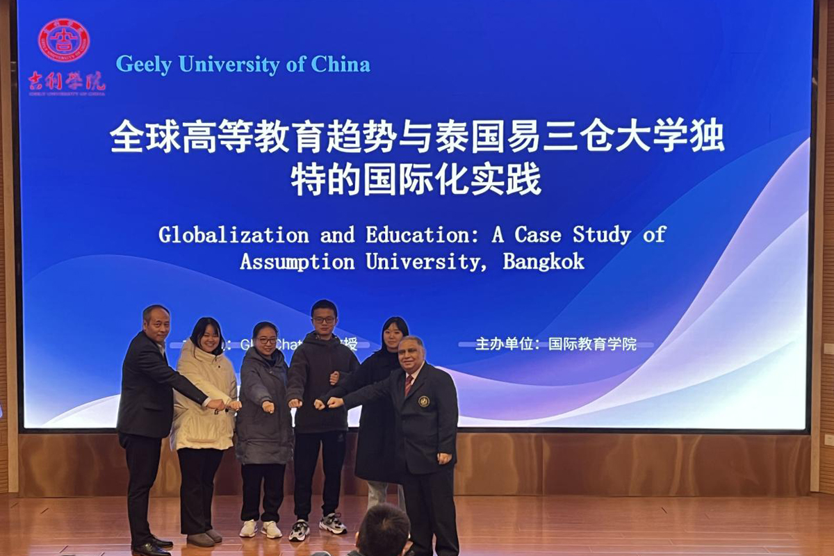 On November 19, Mr. Glen Chatelier delivered a lecture at Geely College to an audience of over 100 students, titled “Trends in Global Higher Education and the Unique International Practices of Assumption University.” Students actively engaged in discussions, exploring the impact of globalization on academic development and career prospects.