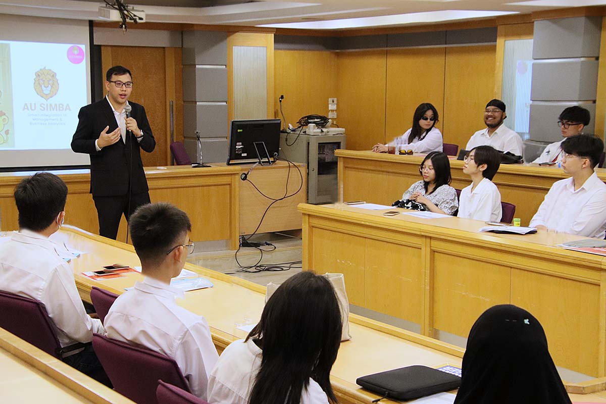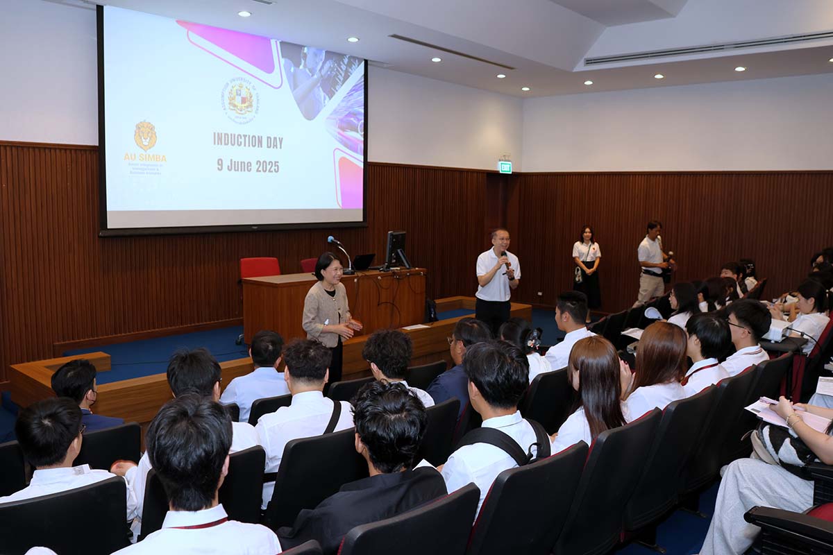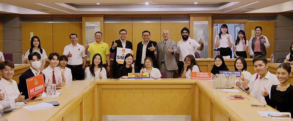 The AU SIMBA (Smart Integration in Management & Business Analytics) orientation was held simultaneously at both Hua Mak Campus and Suvarnabhumi Campus. Students were welcomed with a short but meaningful 45-minute session that introduced them to key university services, support channels, and reminders for a successful semester.